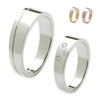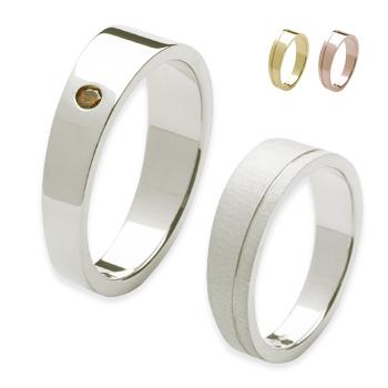 Alle ringen zijn in 14 of 18 karaat wit– geel- of roodgoud te verkrijgen en in platina of palladium met verschillende kleuren diamanten.
