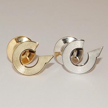 edelsmeden & juweliersGeelgouden en zilveren bedrijfsspeld met het logo van Equipe